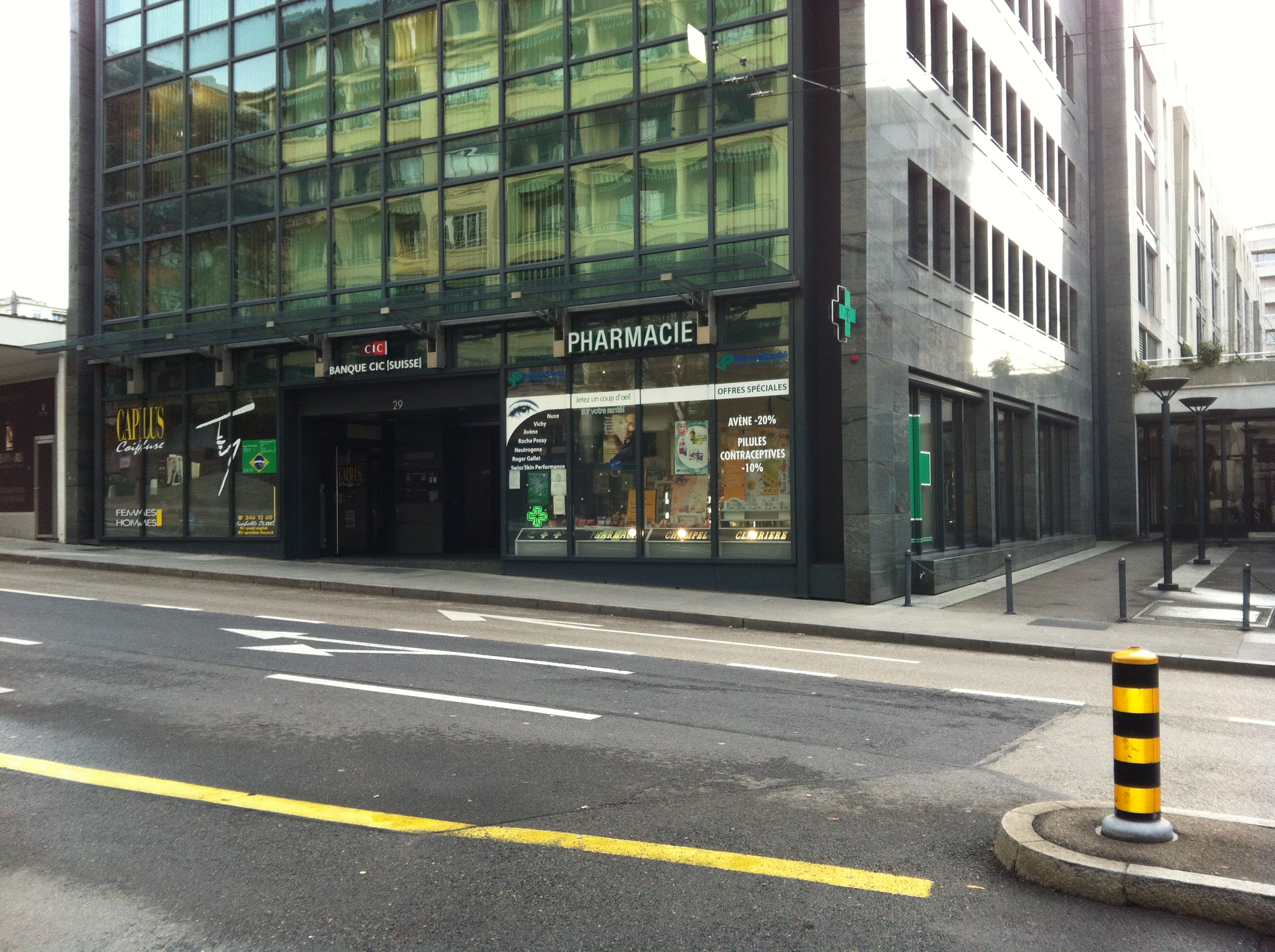 –The Swiss pharmacy has over the counter meds as well as high end lotions like L’Occitane.