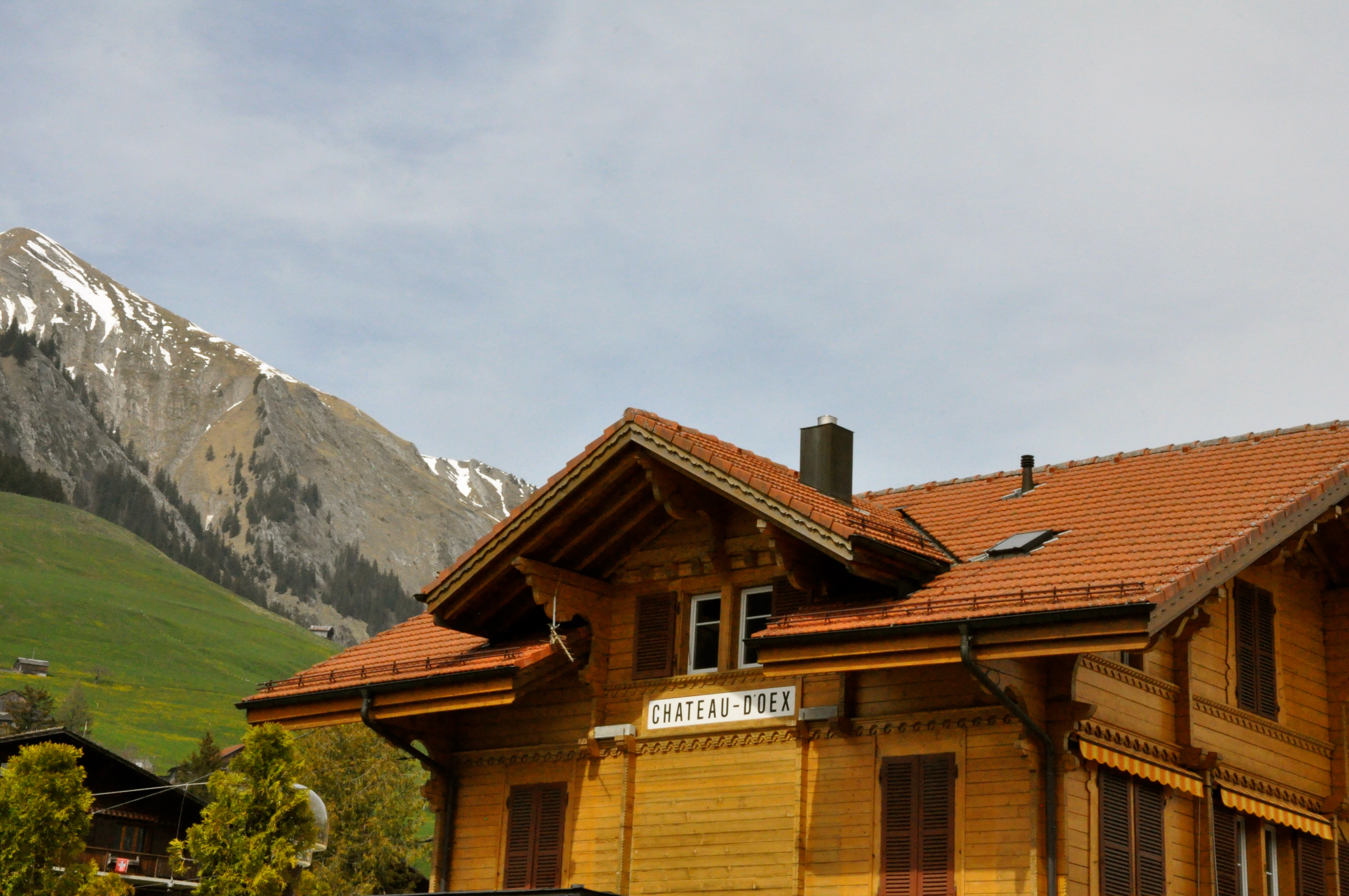 We caught the train an hour later and hopped off again at Château D’Oex. Readers might find this town familiar as we stopped there twice for the Hot Air Balloon Festival. After the Friday night “Night Glow” show failed to produce any balloon pictures, I begged Gabe to go back the following Sunday for more. And that is when I fell in love with this little village known to be the Swiss capital of ballooning.