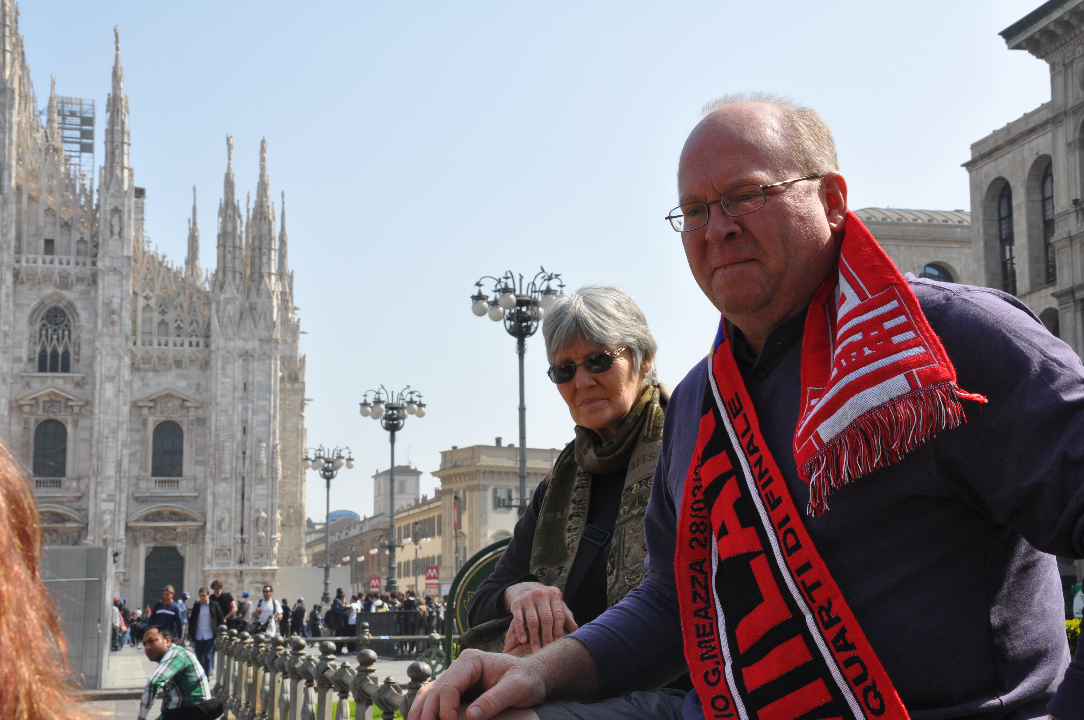 The next day, after breakfast, we took a guided tour. The guide, Esther, was quite good. We’d recommend her for anyone traveling to Milan. We navigated through the thousands of soccer fans in Milan for the Milano vs. Barcelona match happening later that night.