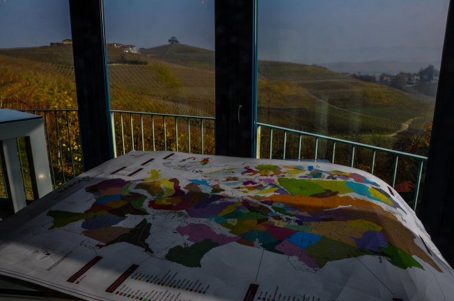 Checking out the Barolo map while overlooking the beautiful vineyards