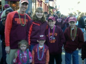 The game was great – we got to tailgate and sit with great friends. VT finally pulled out a victory in overtime, the first in Lane Stadium. Go Hokies!